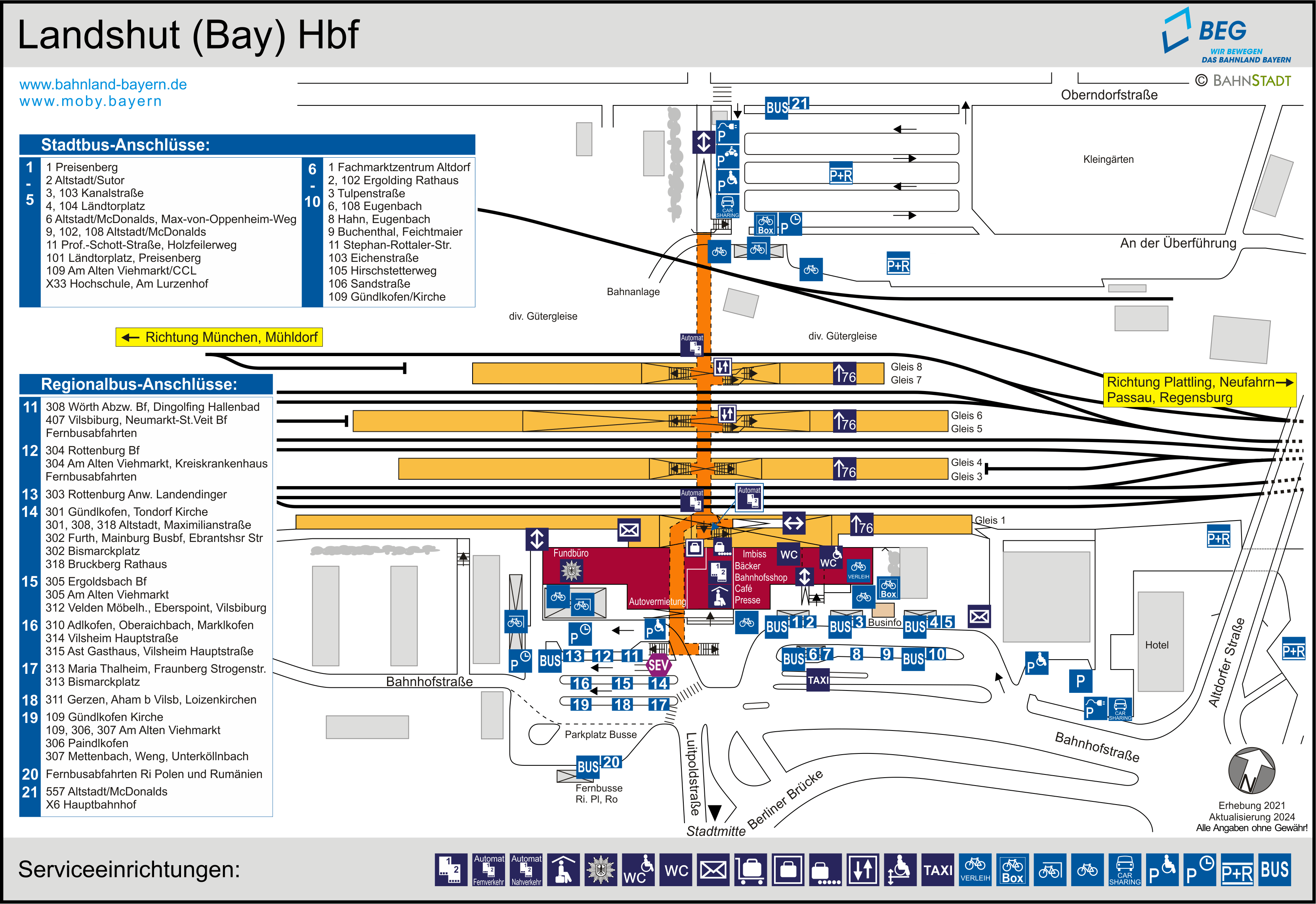 Hinweis: vorhandene Serviceeinrichtungen sind angekreuzt |