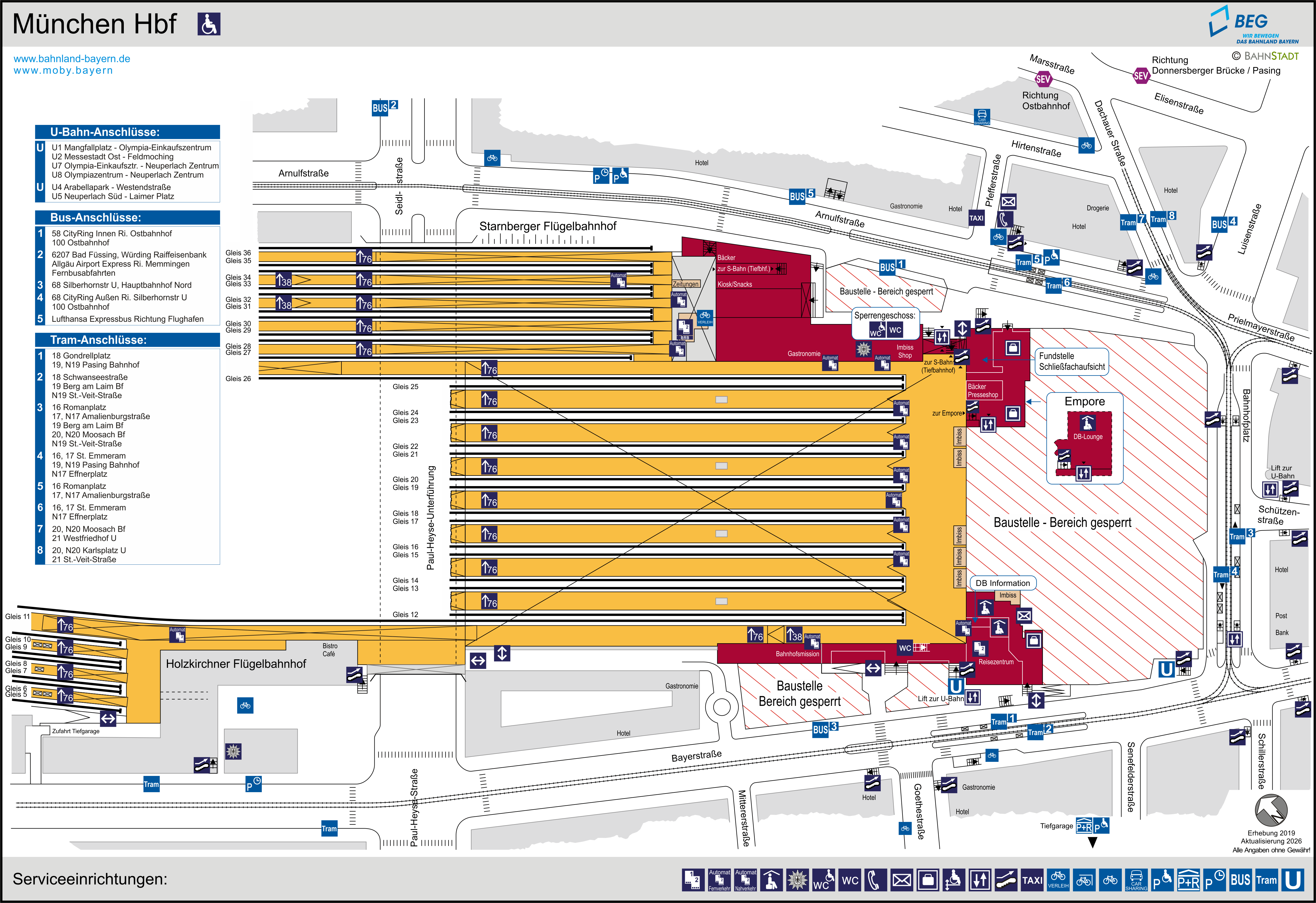 Hinweis: vorhandene Serviceeinrichtungen sind angekreuzt |