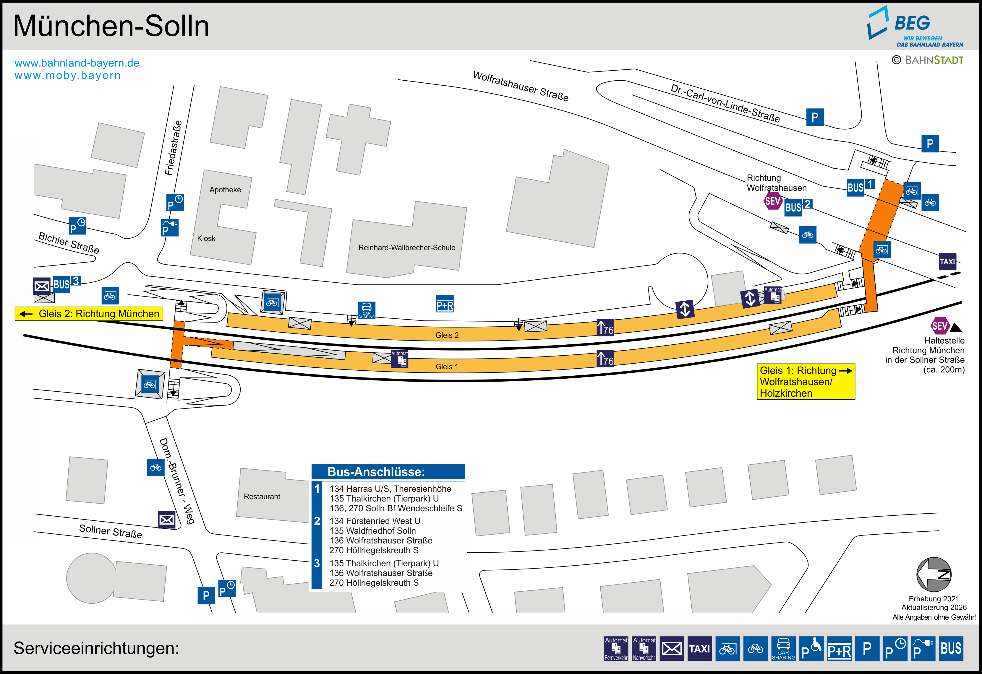 | Geänderte SEV-Haltestelle: Bis vsl. 03.06.2026 fahren die SEV-Busse Richtung Innenstadt in der Sollner Straße, Höhe Hausnummer 63 ab. |